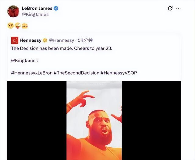 北京时间10月8日0点,詹姆斯“第二次决定”正式公布,系某酒类品牌推广,詹姆斯宣布他将与该品牌合作,推出联名限定款。